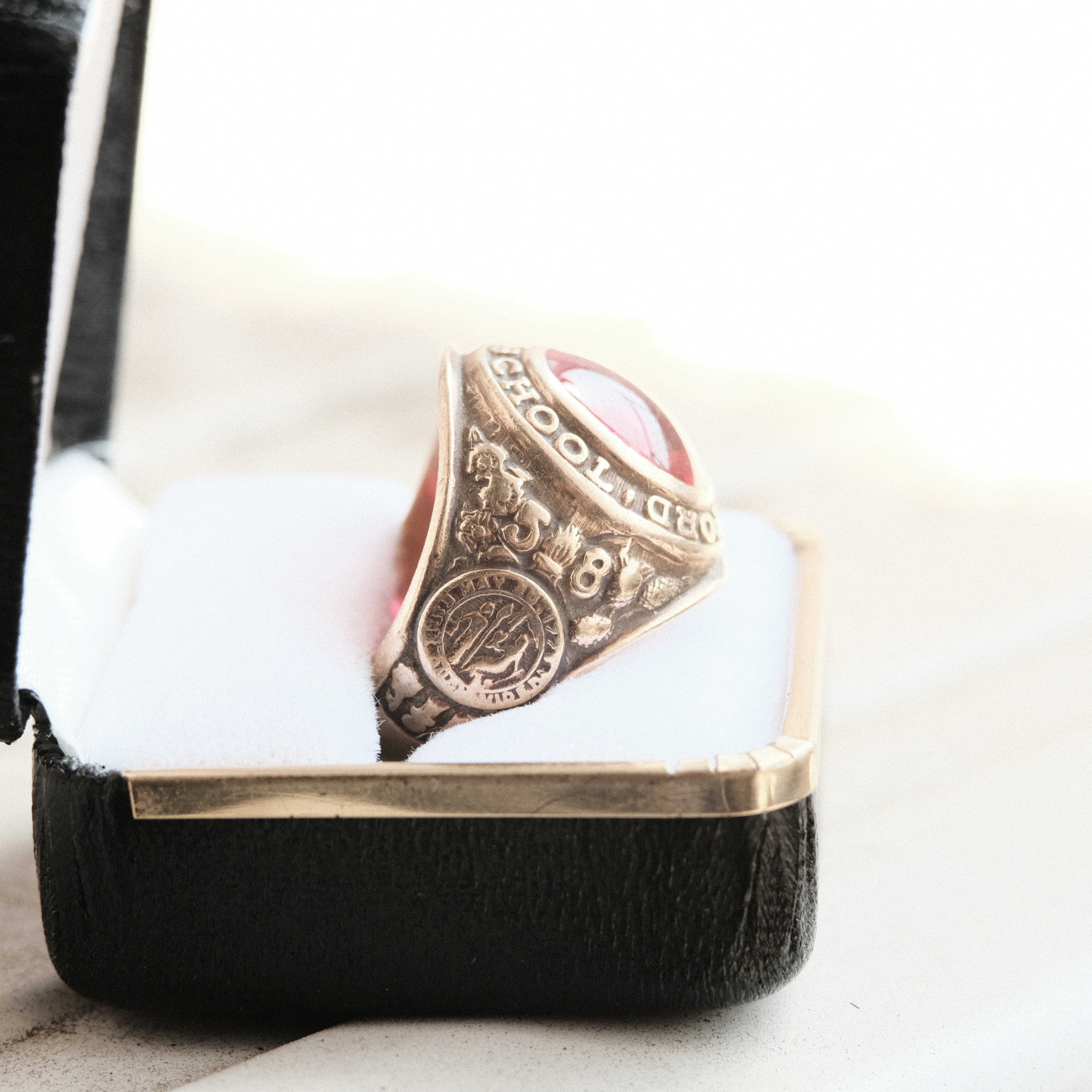 アメリカンヴィンテージジュエリーの王道アイテム、カレッジリング。その中でも大ぶりなモデルで古き良きアメリカの空気感を心行くまで堪能できるリングです。