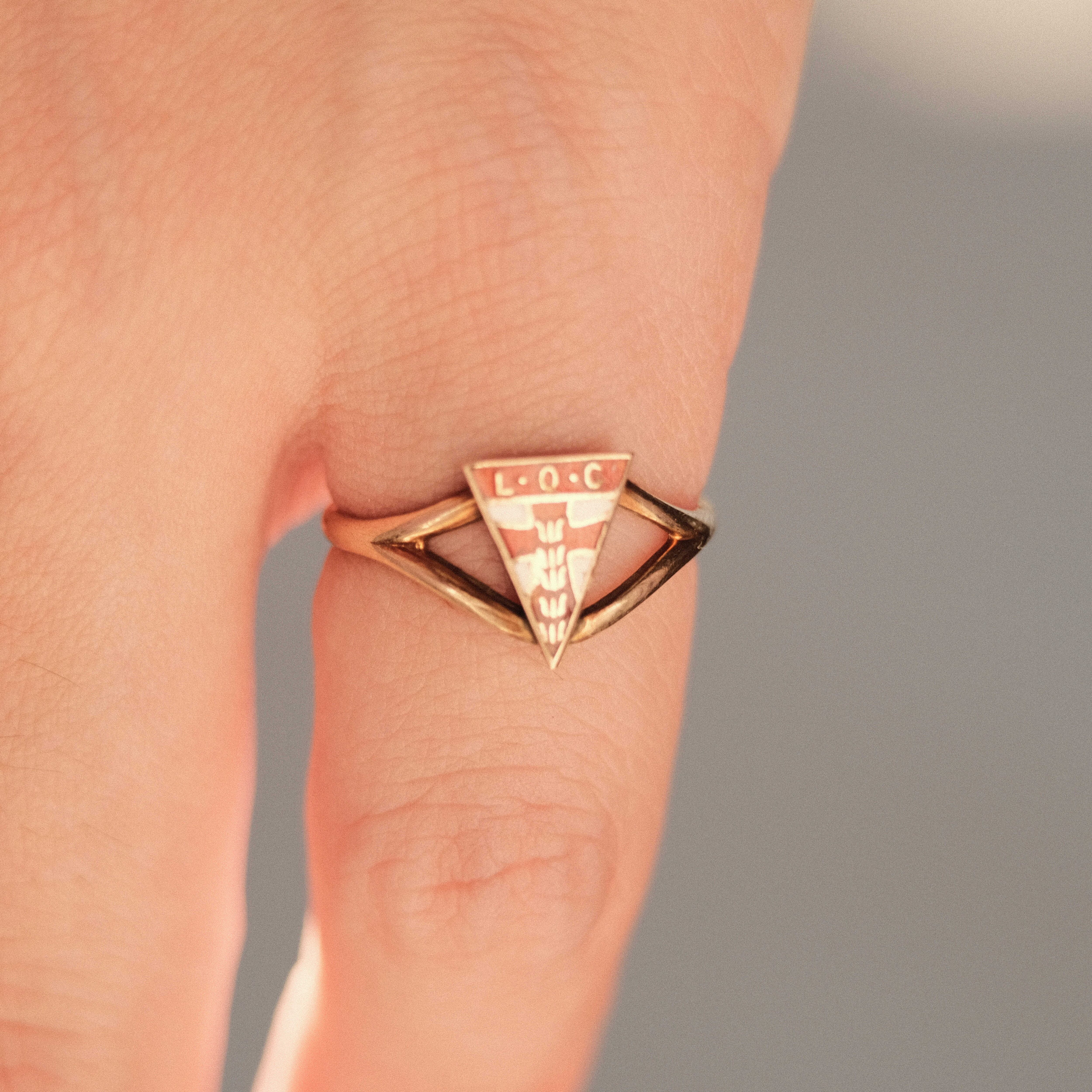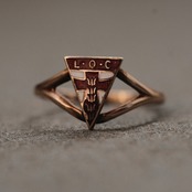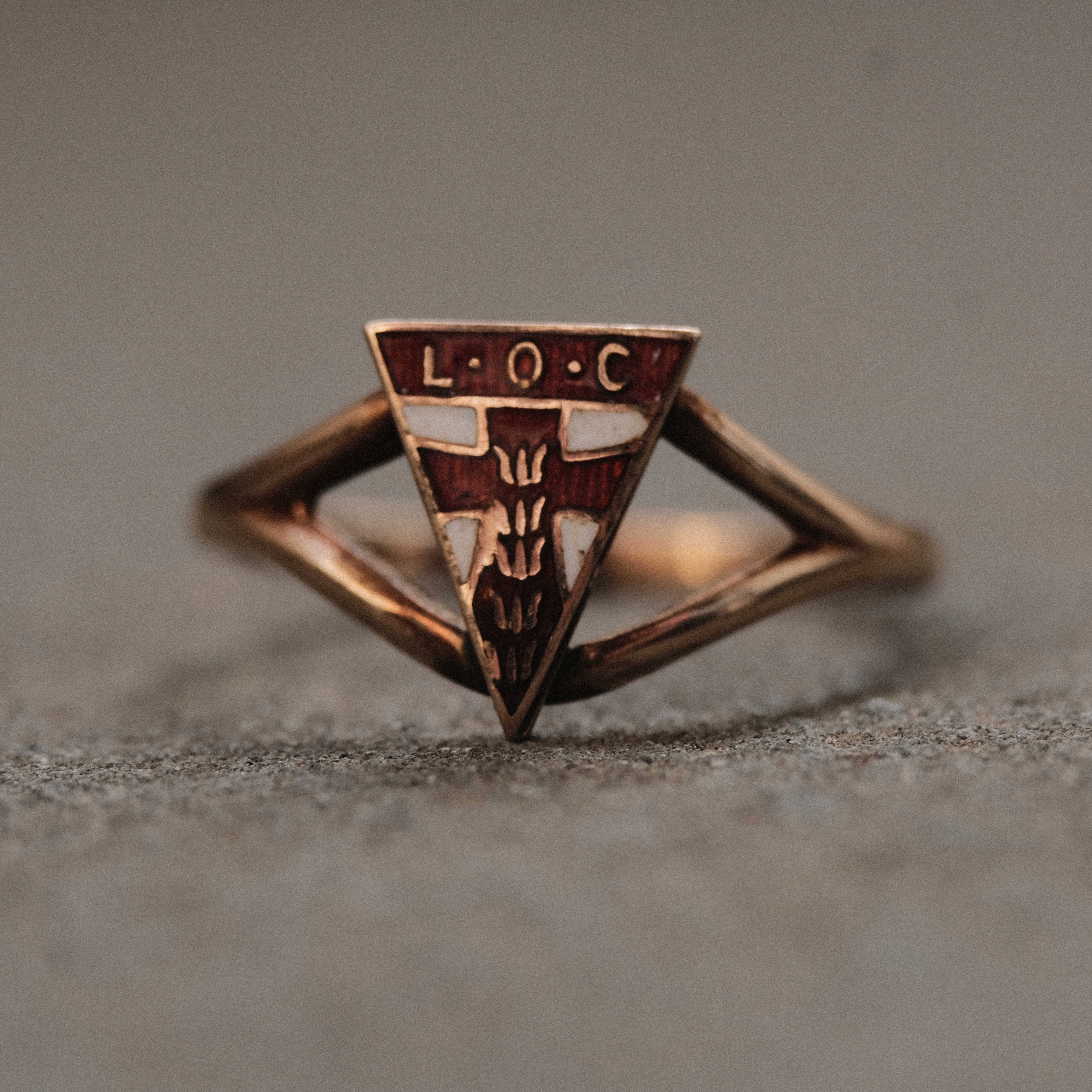 L.O.C.のイニシャルと背骨のようなモチーフが象徴的なオールドリング。