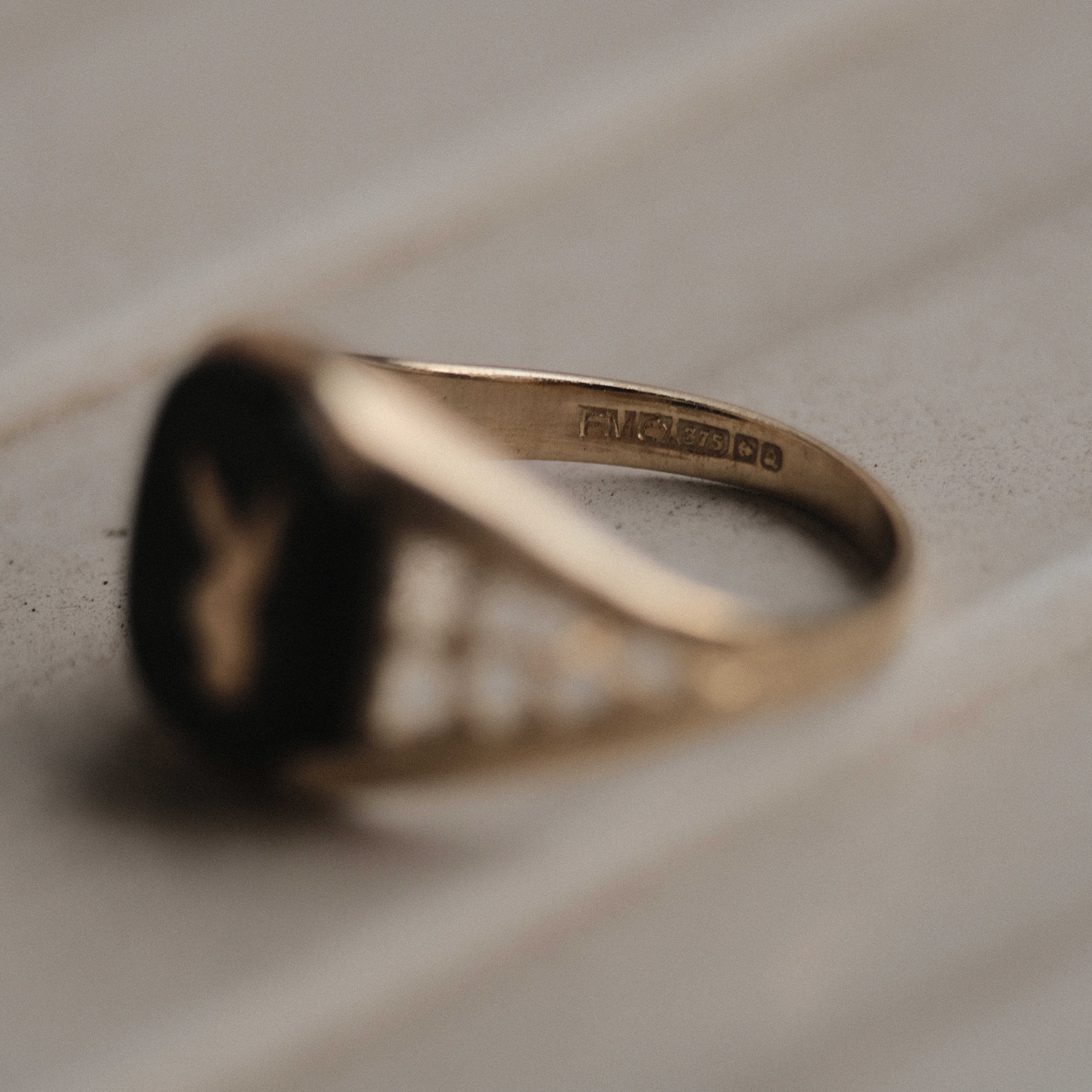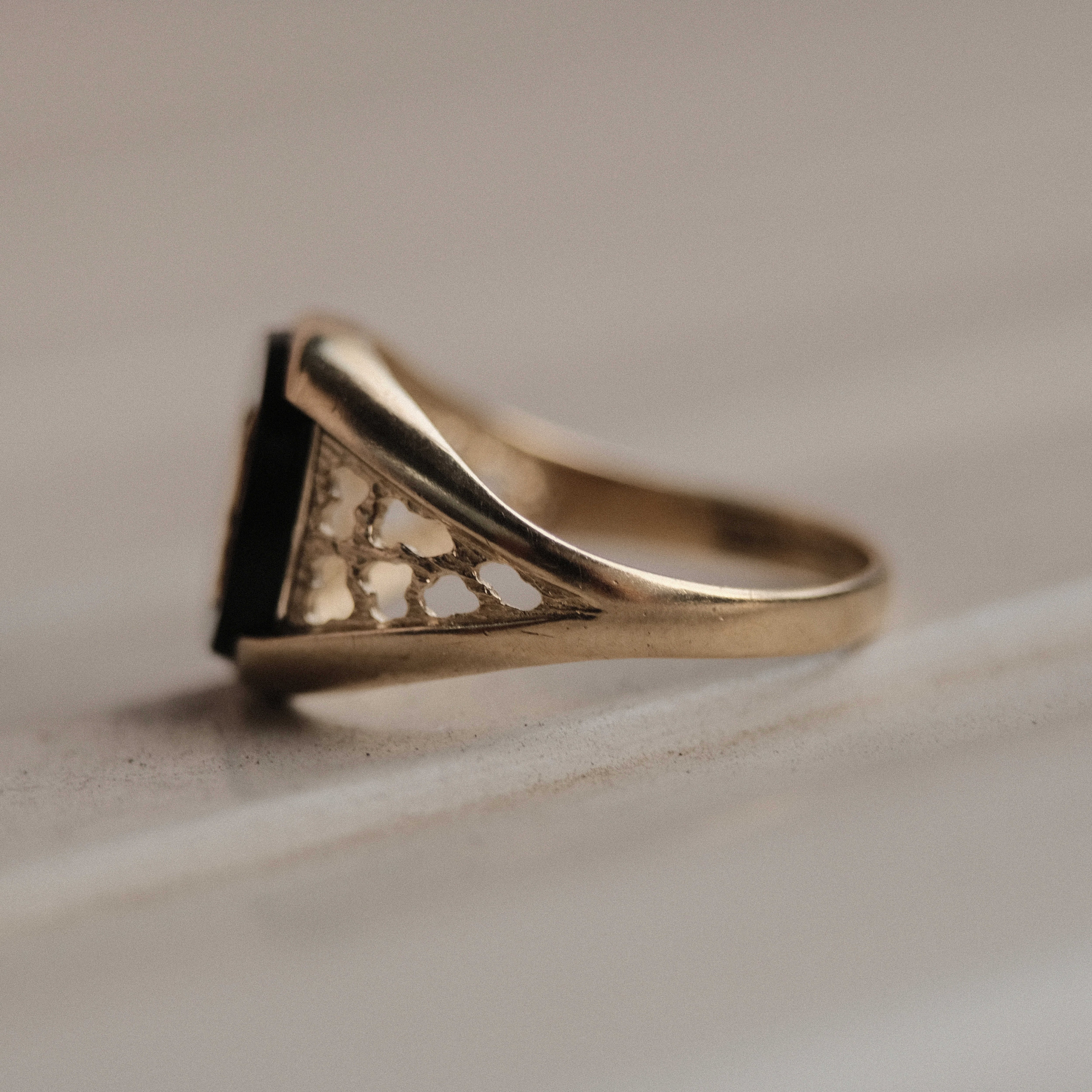 Vintage gold and onyx Playboy signet ring