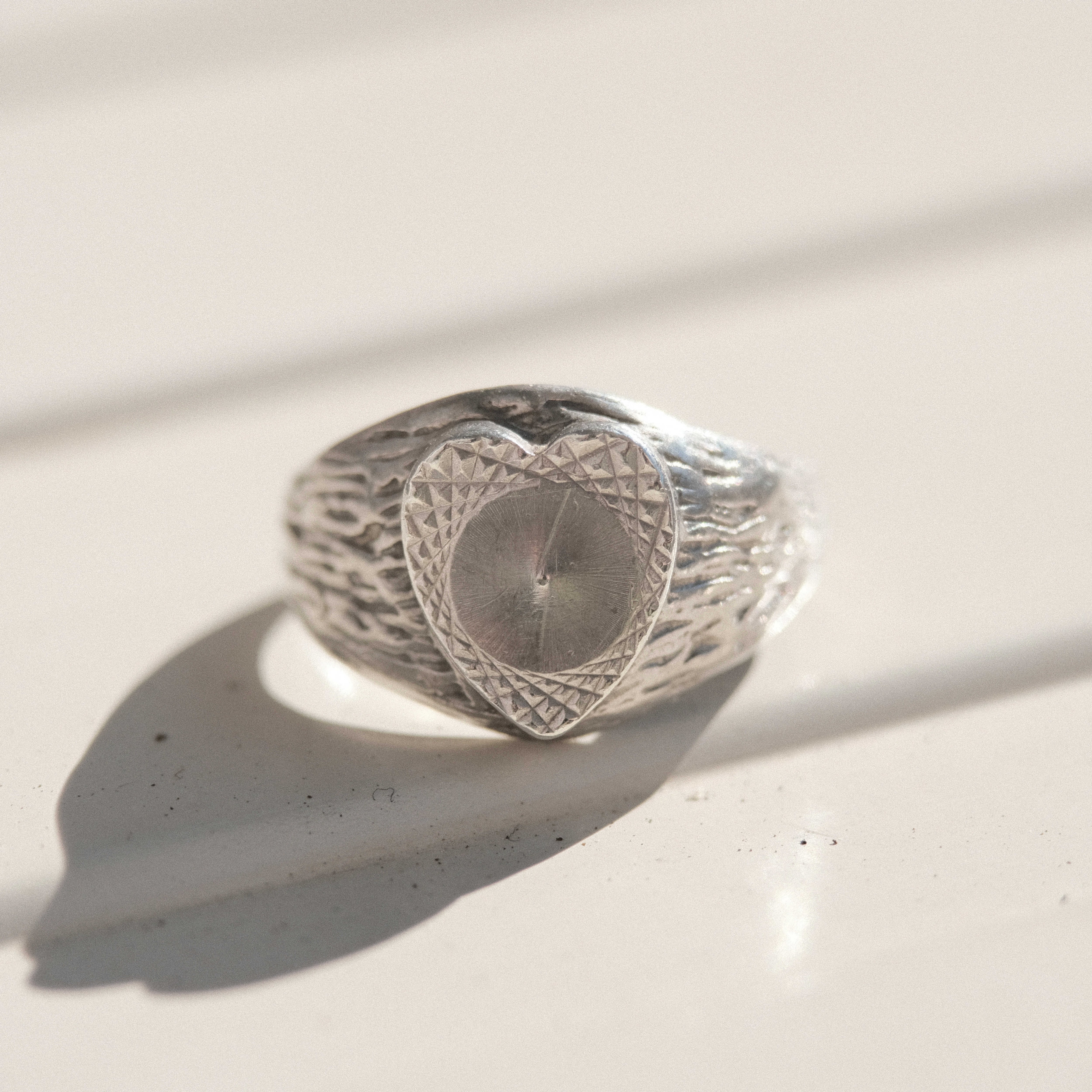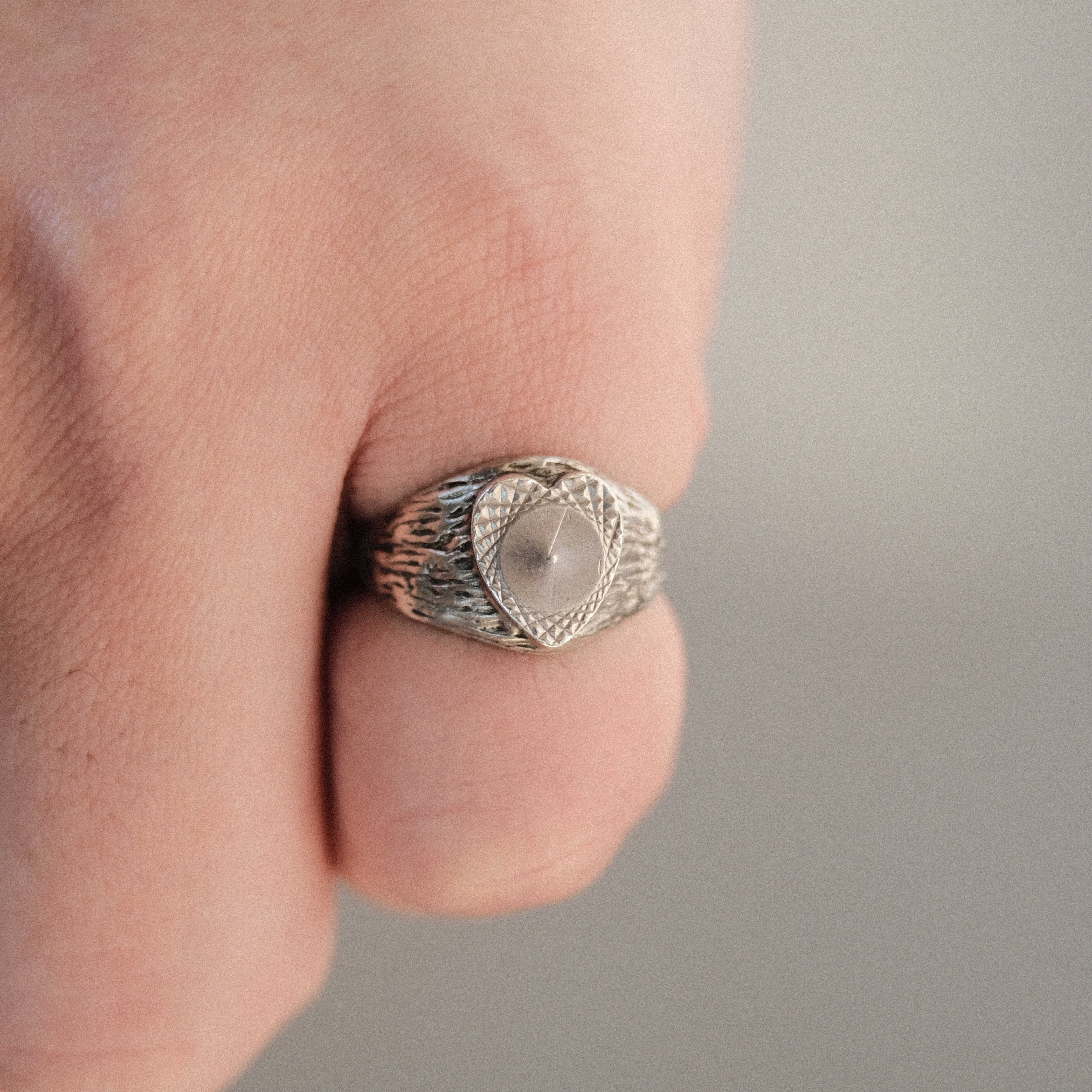 Unique UK vintage silver heart signet ring