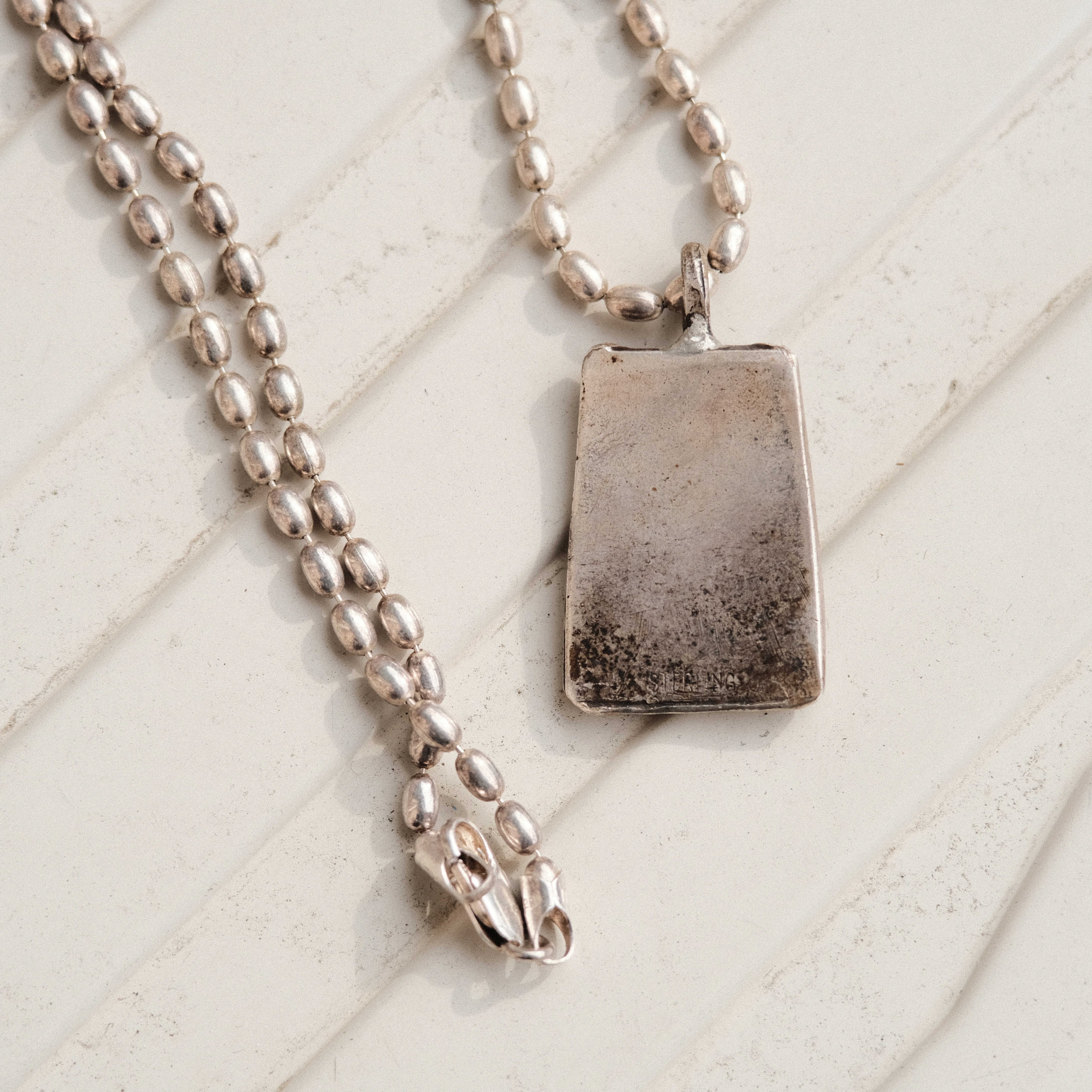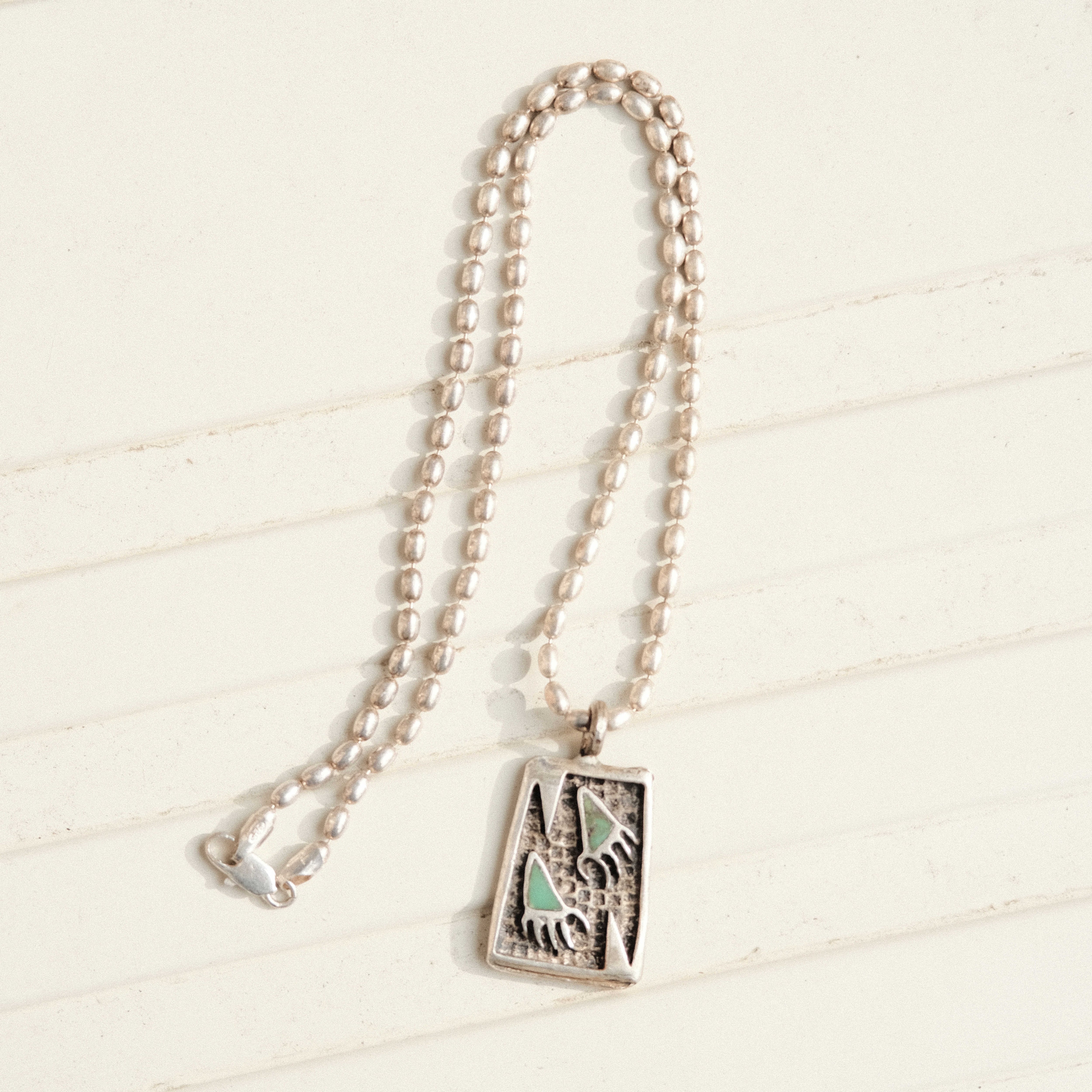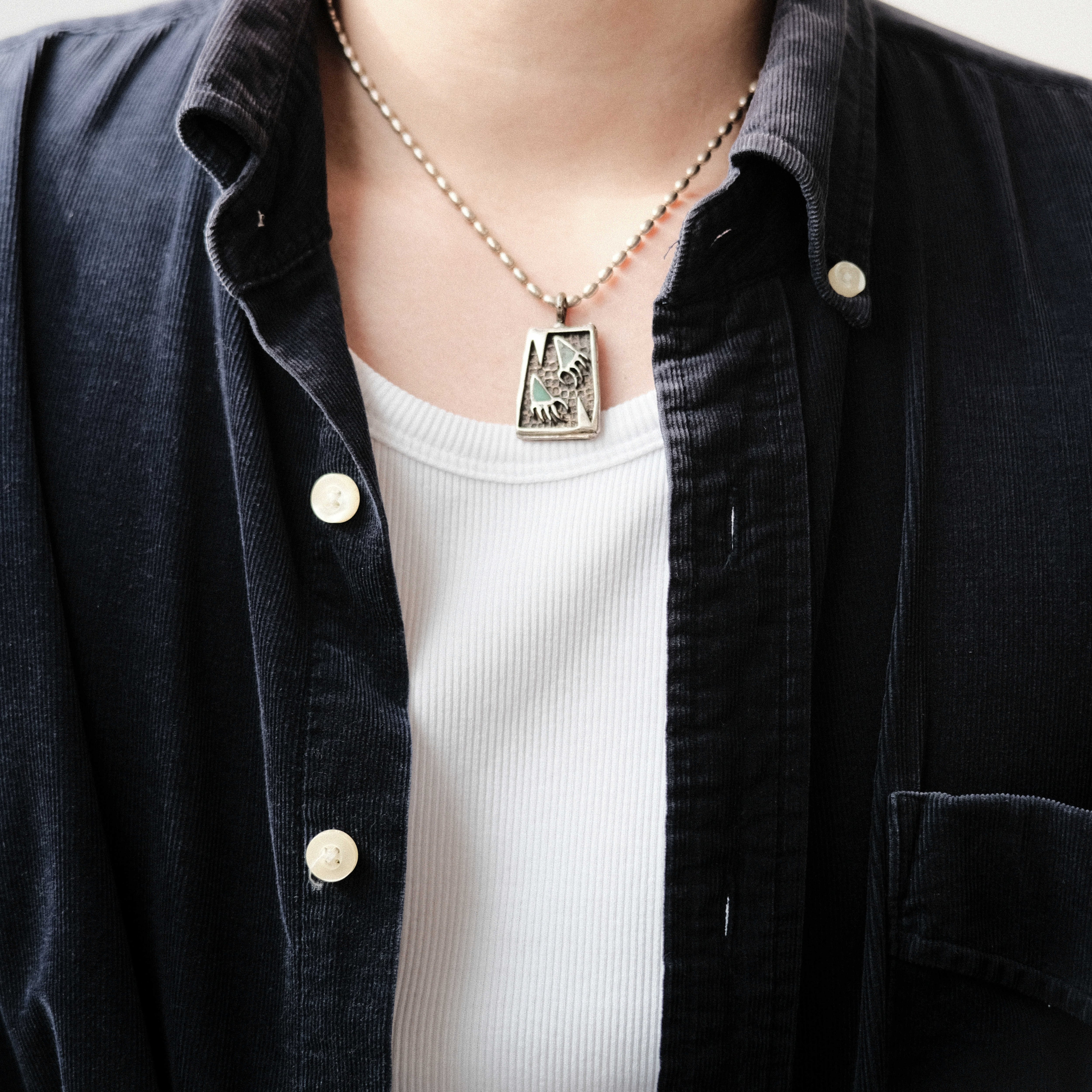 ネイティブアメリカンの主要モチーフの一つ「熊の手」がドッグタグを彷彿とさせるようなデザインのネックレスに取り入れられたピース。ボールチェーンとドッグタグライクなペンダントトップにトライバルな空気感を融合した表情がネイティブアメリカンな雰囲気もミリタリーな雰囲気も放つ魅力的なアイテムです。どこからかストリートな空気感もほんのりと感じられ、多様な表情がコーディネートに奥行きを与えてくれます。