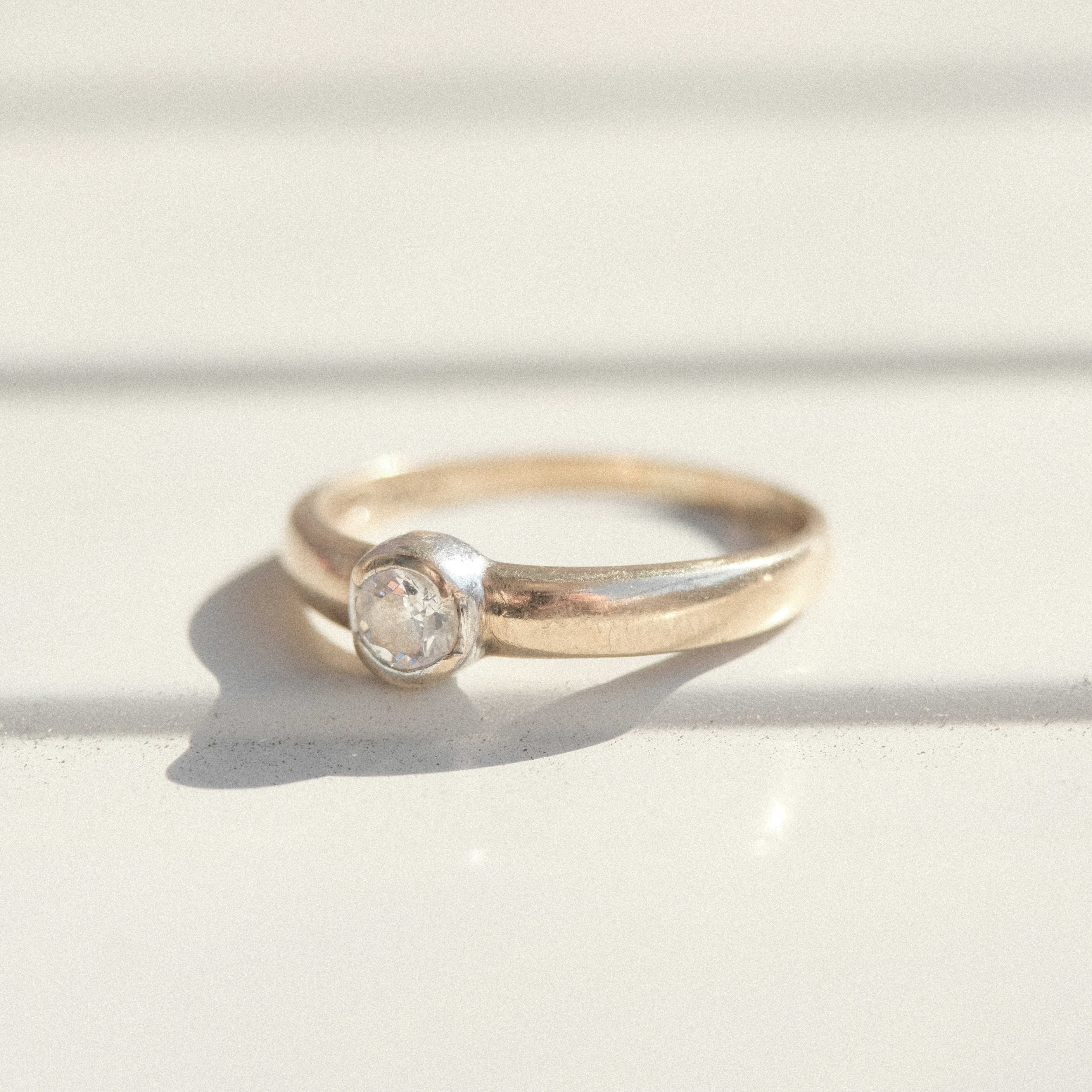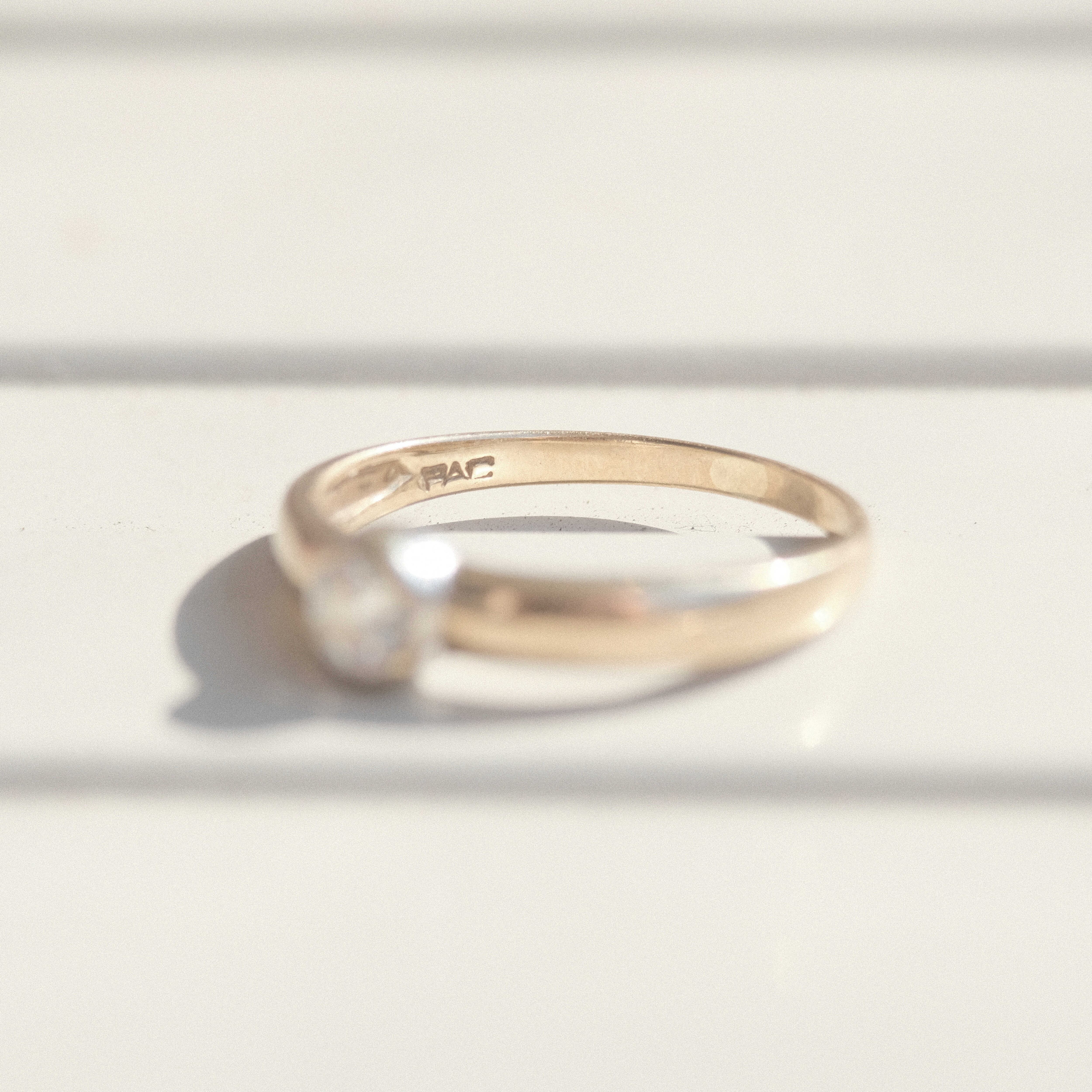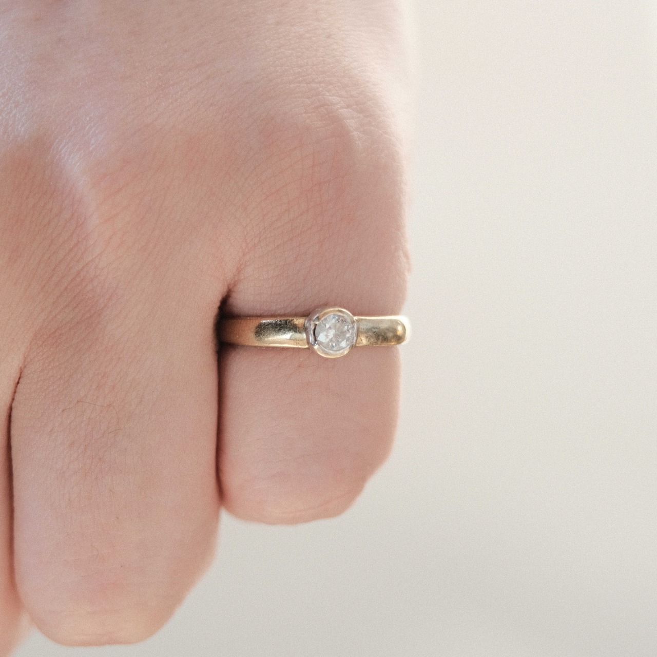 ソリティアリング(リング中央に一粒の宝石をセッティングしたリング)としての伝統的な造形を踏襲しつつもモダンなファッションに溶け込むようなシンプルで洗練されたデザインが魅力的な個体です。