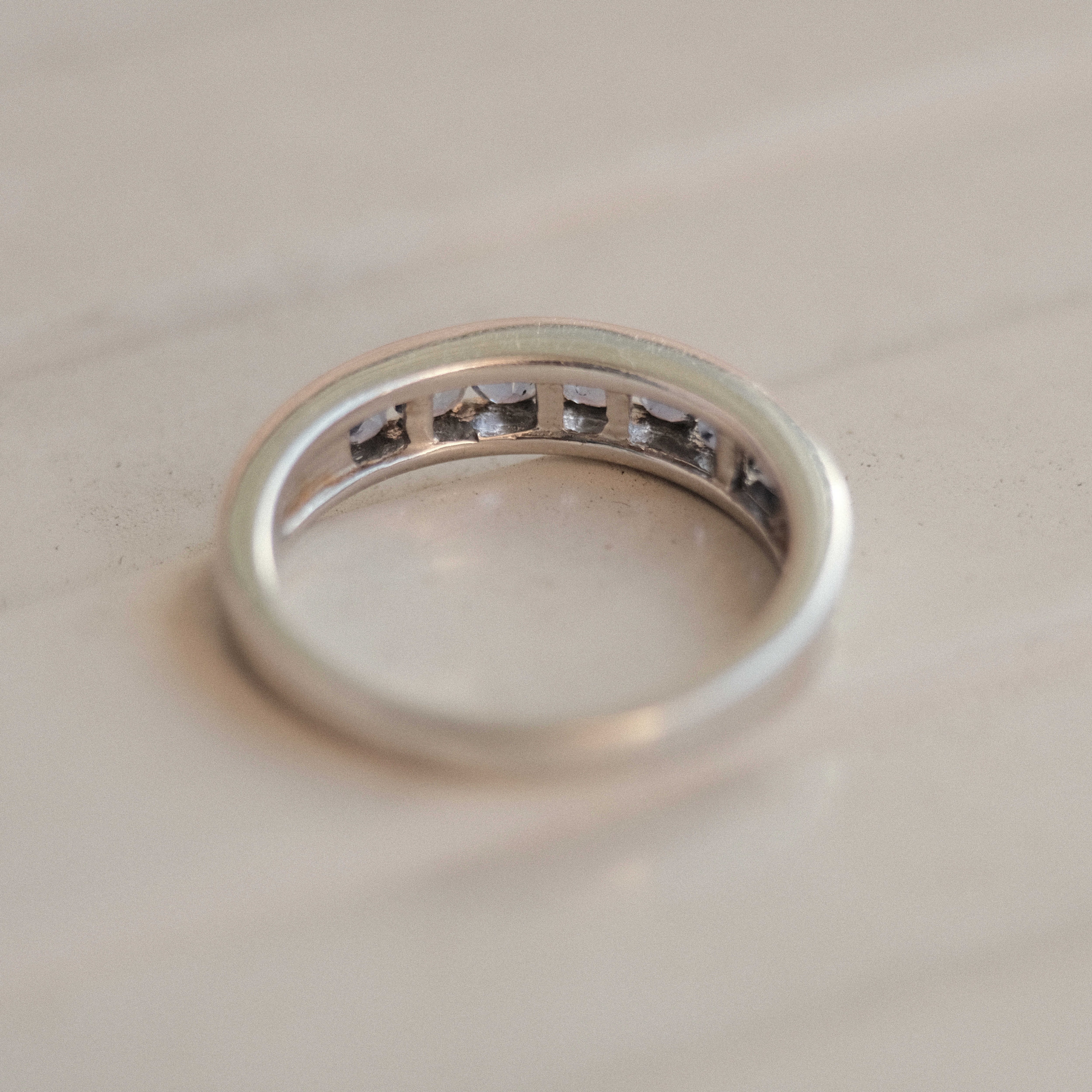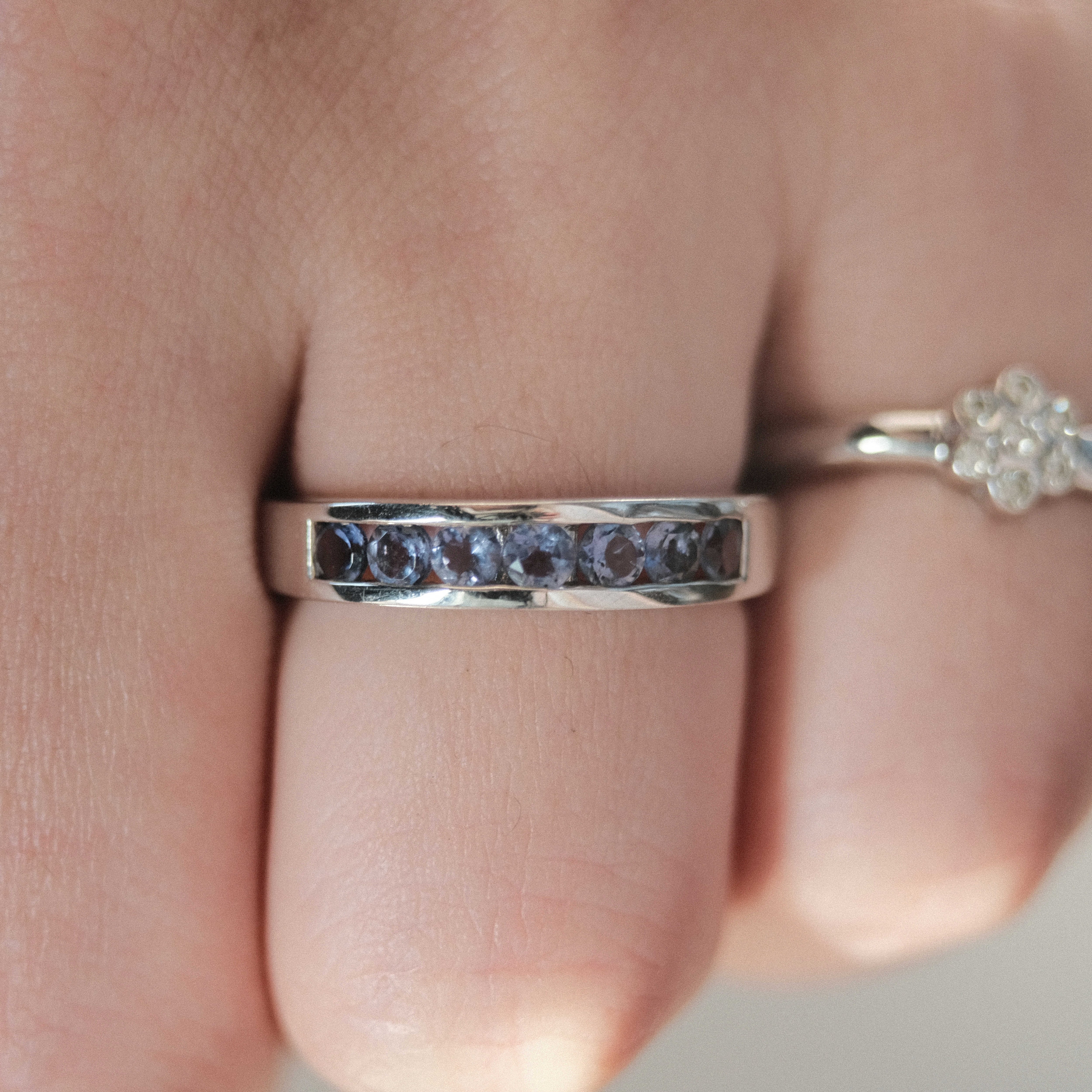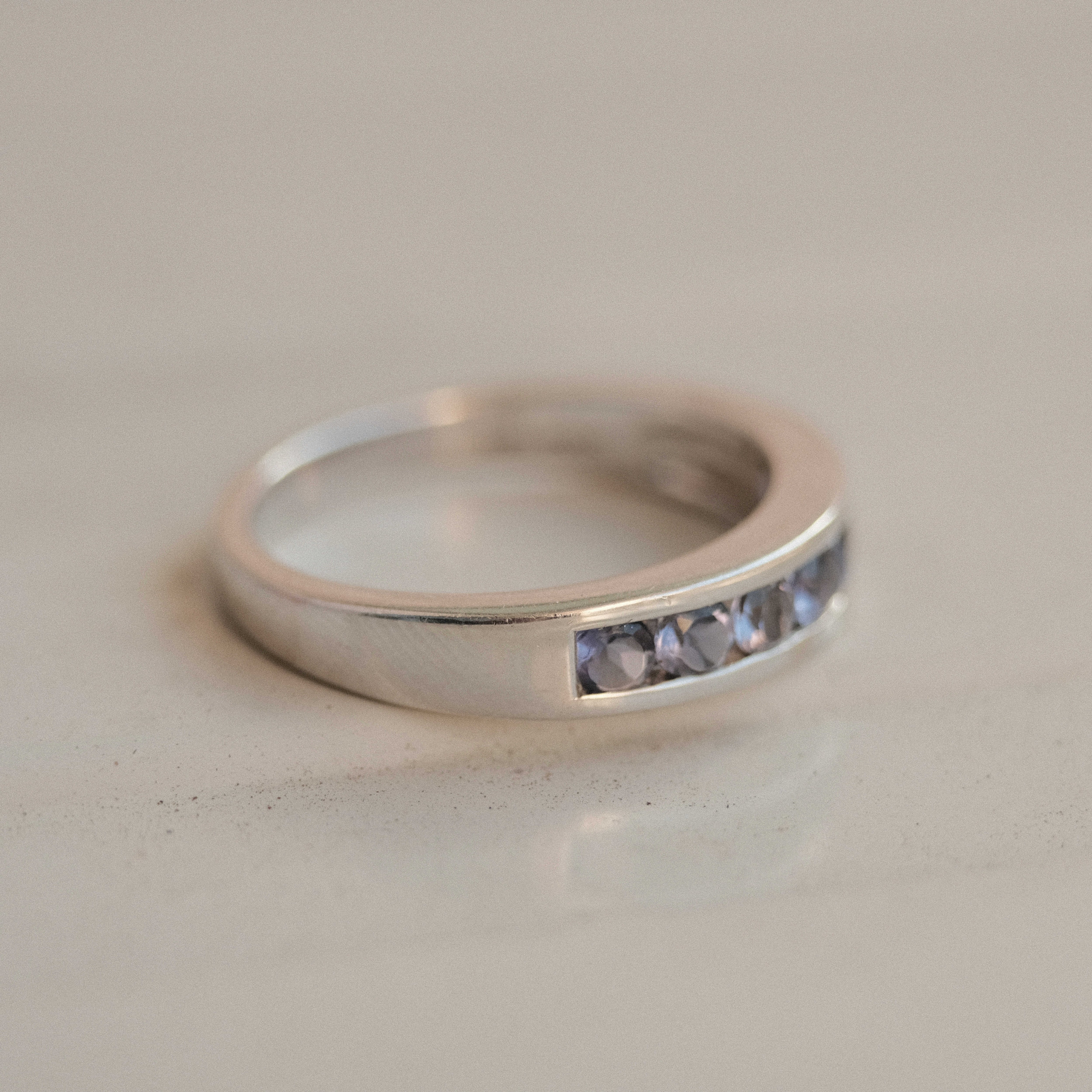 Silver and tanzanite half eternity band ring from the UK
