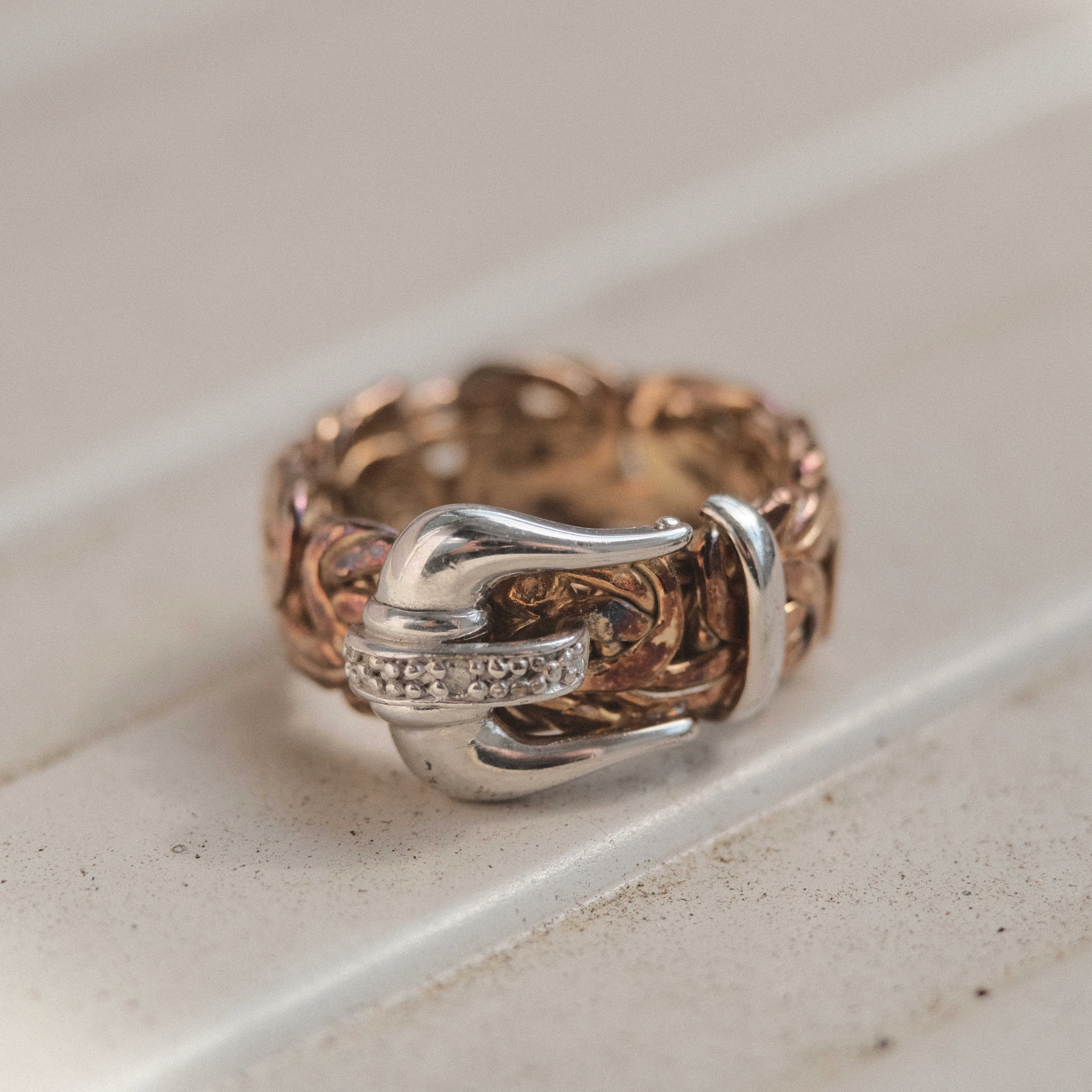 Gold plated silver and diamond belt ring