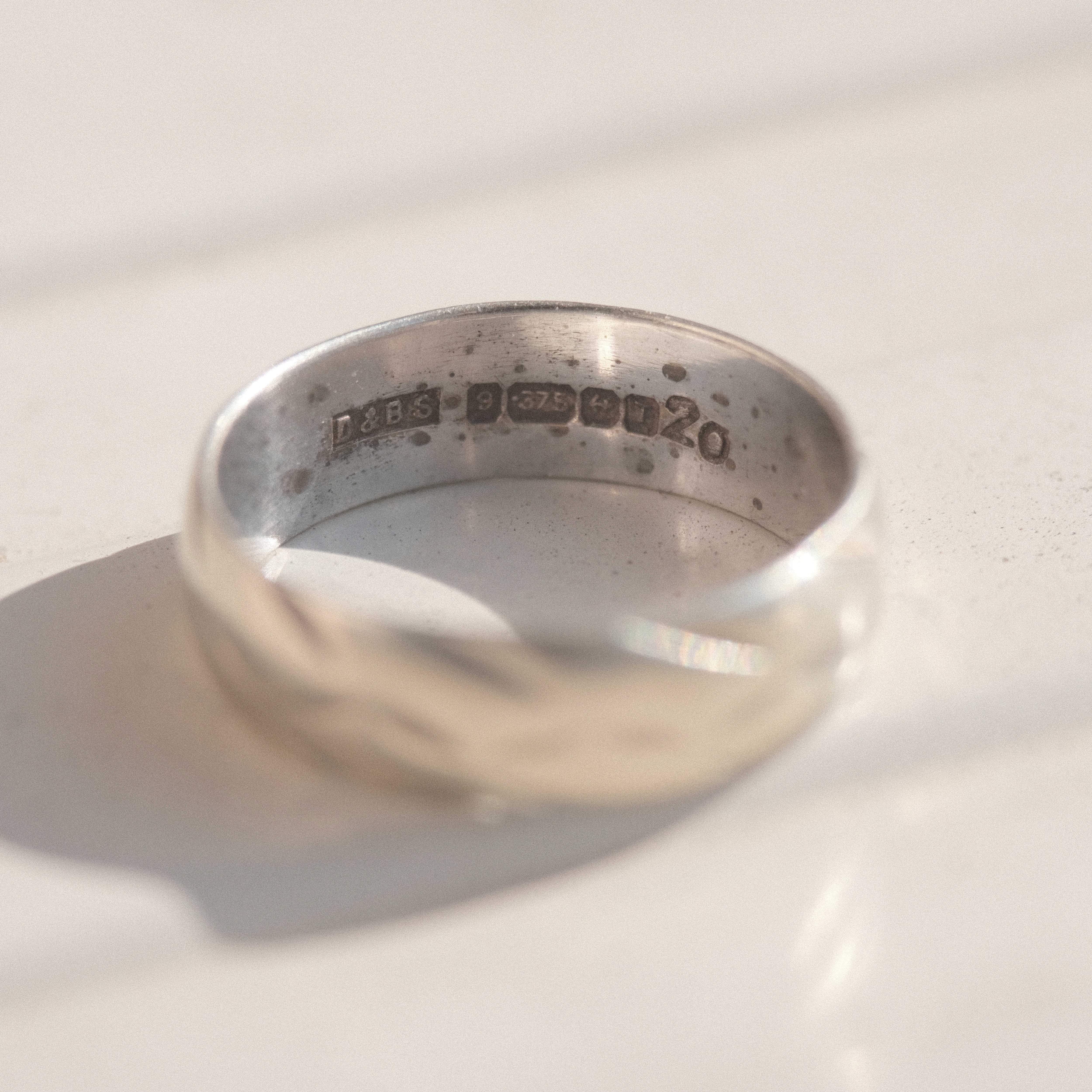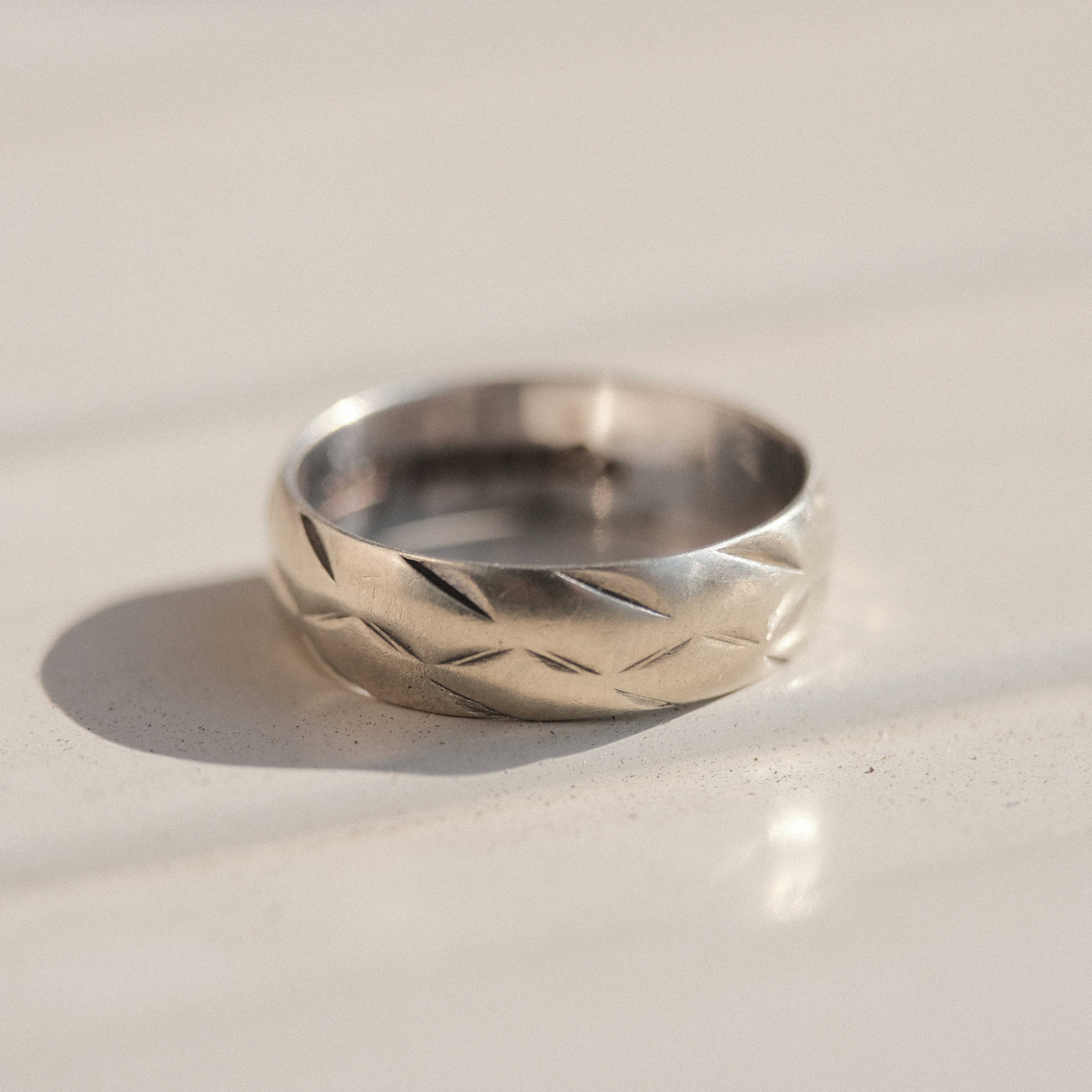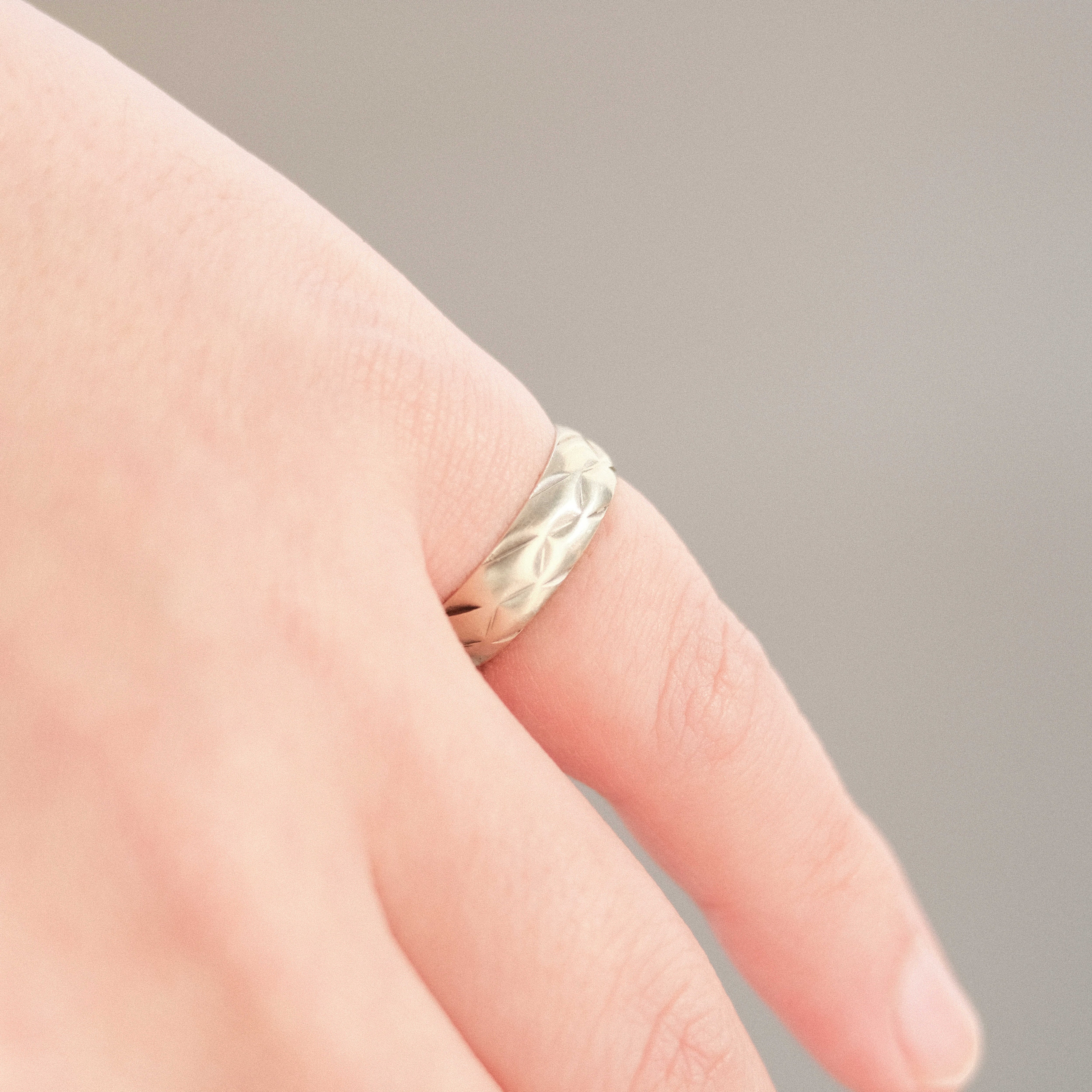 UK vintage white gold band ring with quilting-like design