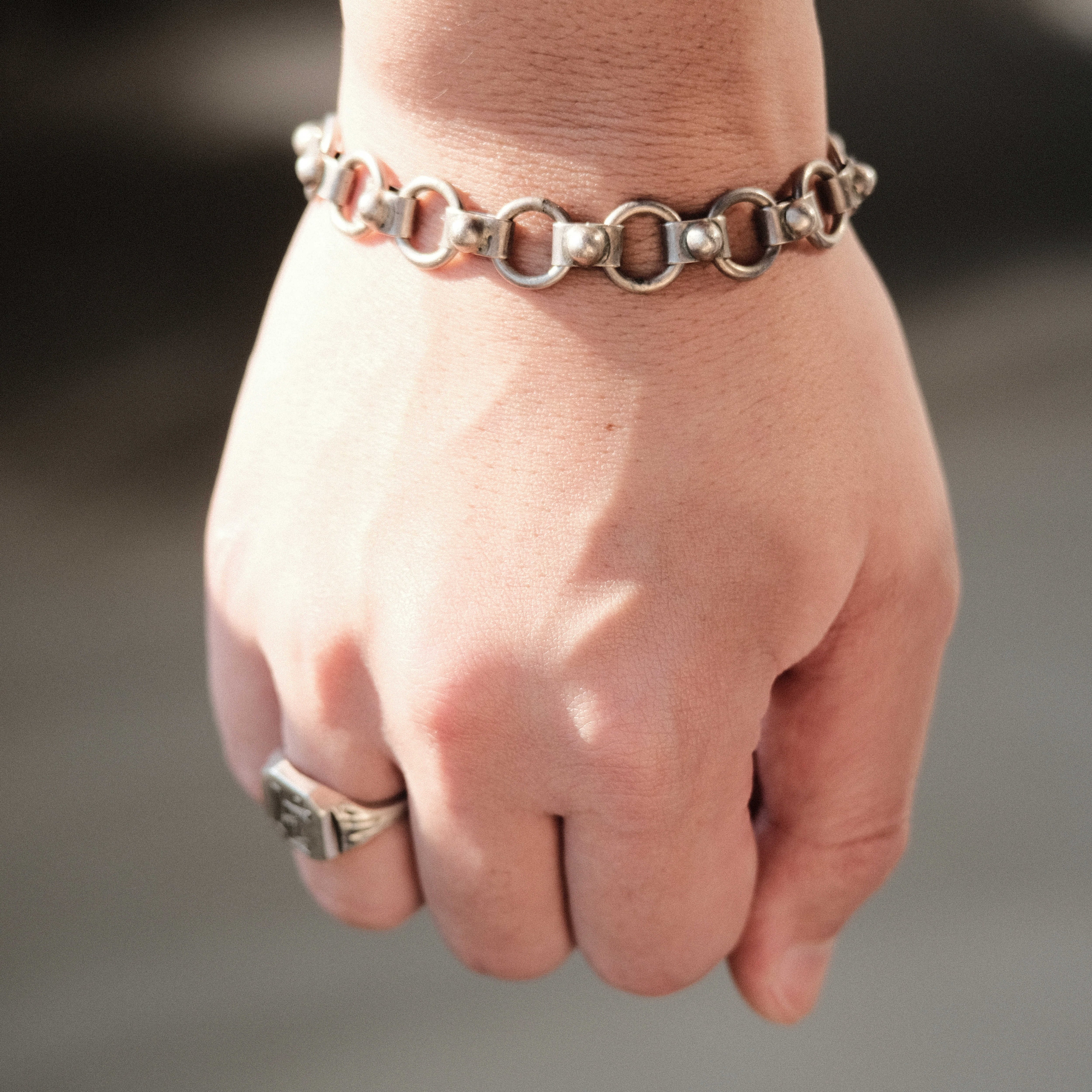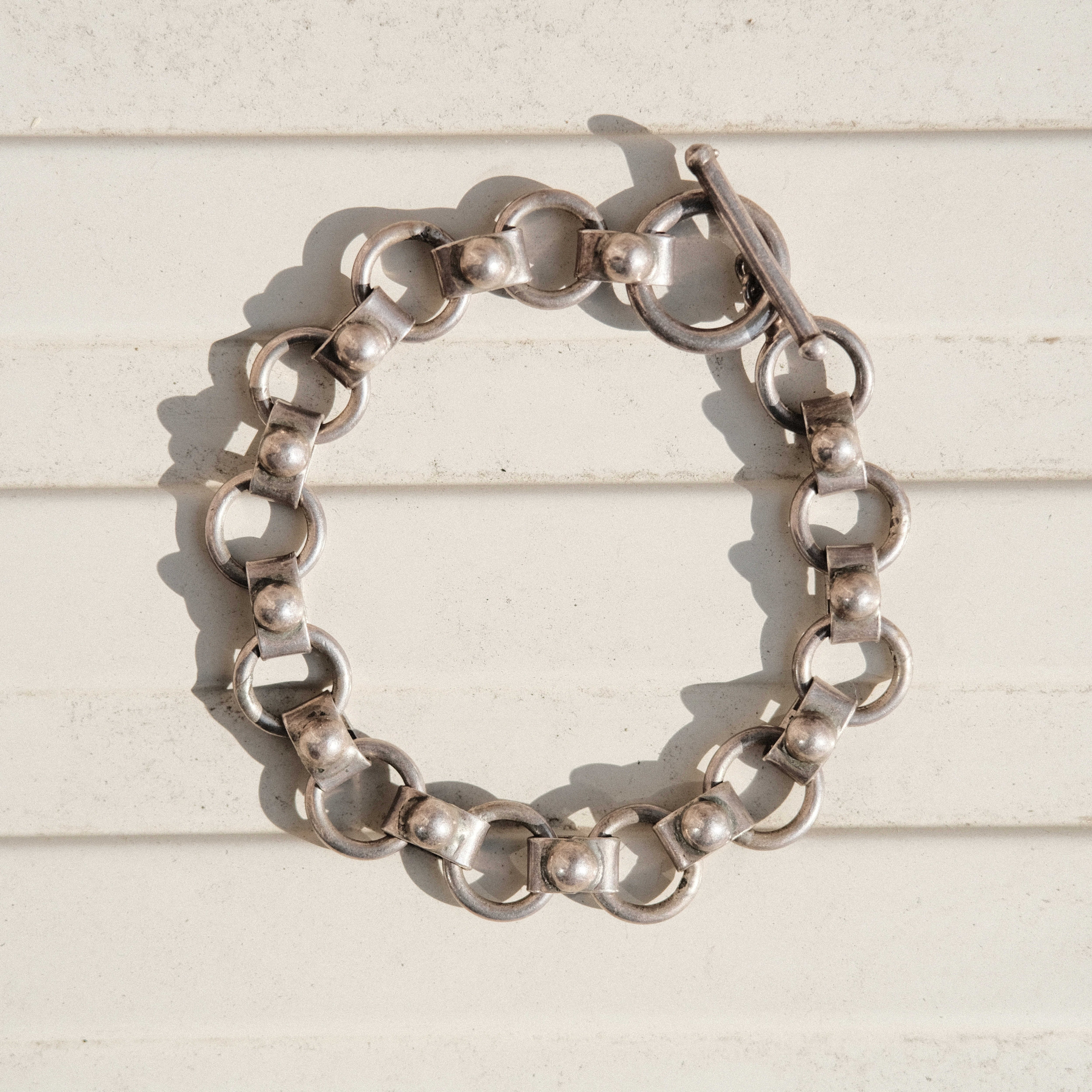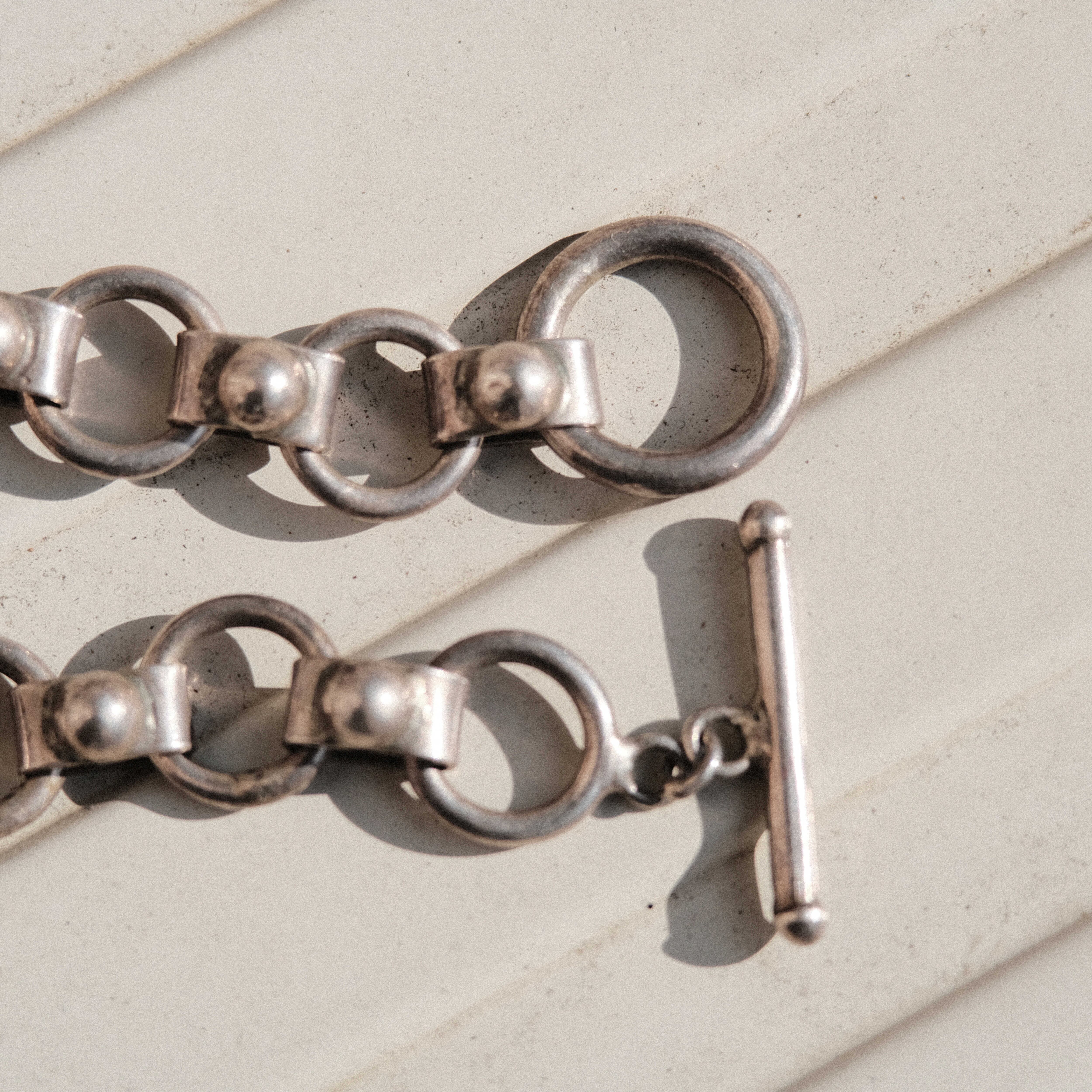 Mexican silver round link bracelet