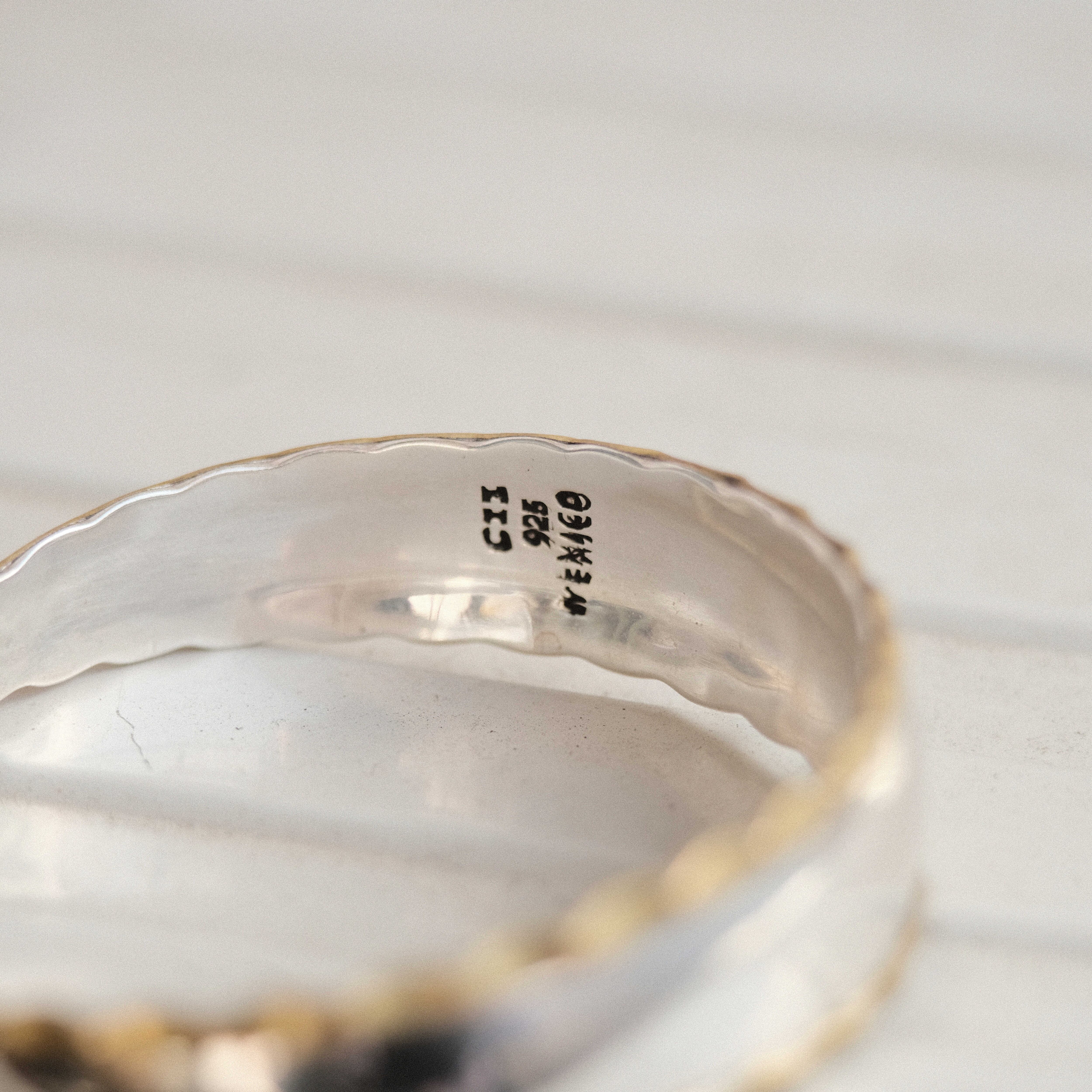 またメキシカンジュエリーとしては珍しくエッジ部分が合金メッキになっていることでエイジングを楽しむことができる、積極的に日常遣いをしたくなる愛着の沸くようなピースに昇華されています。